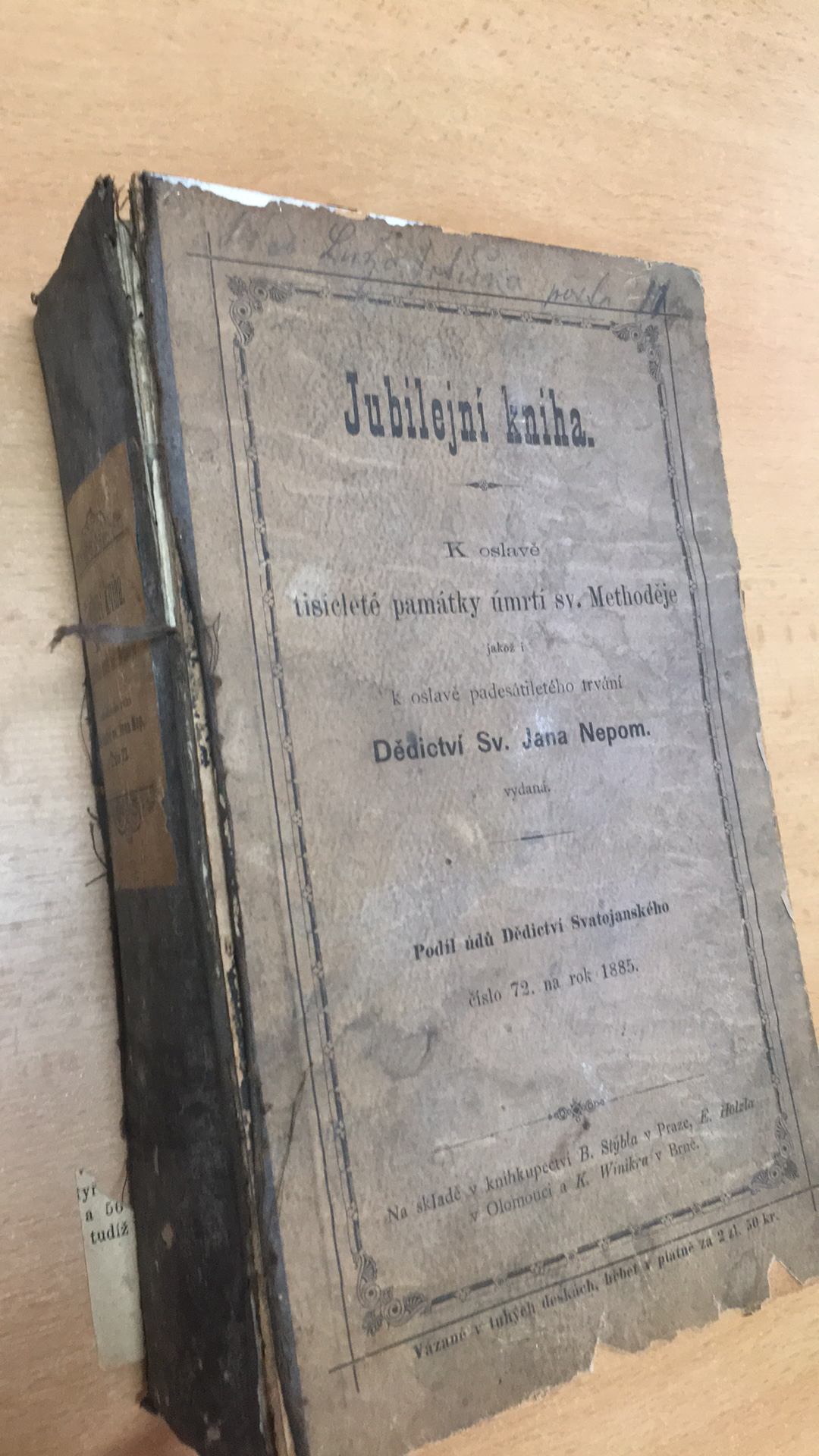 K oslavě tisícileté památky úmrtí sv. Metoděje a padesátiletého trvání Dědictví Sv. Jana Nepomuckého - Jan Kř. Votka T. J.