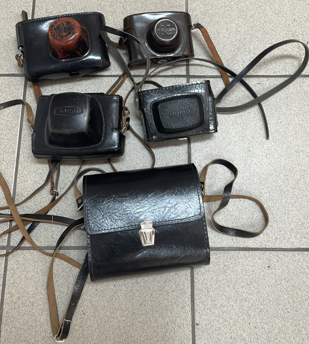 4 KUSY FOTOAPARÁTŮ V OBALECH + BLESK.