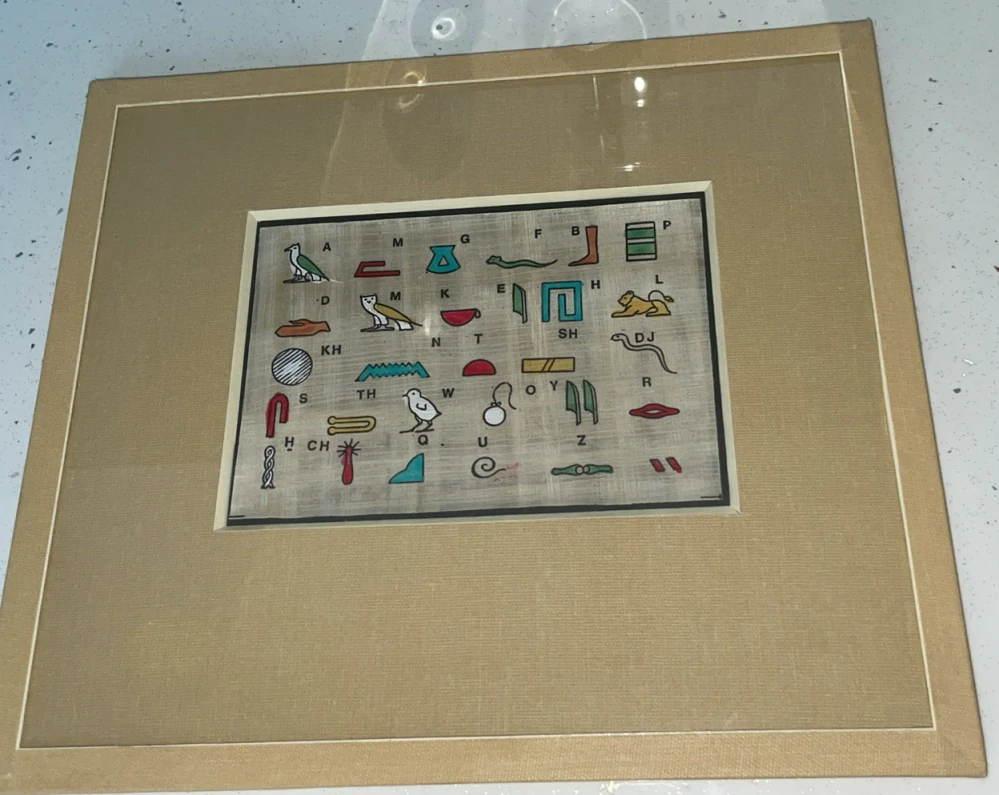 SYMBOLY - ZASKLENO. VÝŘEZ 13 X 10. VELIKOST S RÁMEM : 21 X 24.