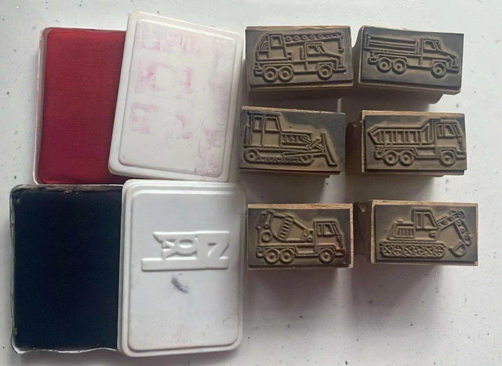 2 kusy tiskařské podušky, 6 kusů tiskátek.